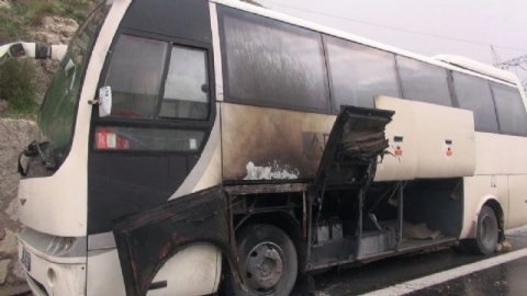 Sakaryaspor taraftarını taşıyan midibüste yangın çıktı. Taraftarlar hemen tahliye edilirken, yanan midibüsü itfaiye ekipleri söndürdü.