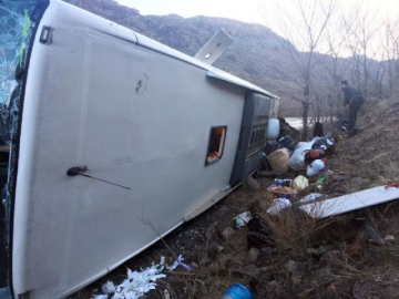 Kars'ın Sarıkamış ilçesinde yolcu otobüsünün yan yatması sonucu meydana gelen trafik kazasında 9 kişi yaralandı. Alınan bilgiye göre, Sarıkamış - Karakurt yol ayrımında saat 08. 00 sıralarında meydana gelen trafik kazasında, Iğdır istikametinden gelen 34 DY 9422 plakalı yolcu otobüsü gizli buzlanmanın oluştuğu yolda kayarak yan yattı. Kazada 9 kişi yaralandı. Yaralılar ambulanslarla çevre hastanelere kaldırılarak tedavi altına alındı. Kazayla ilgili tahkikat başlatıldı. (ıSerkan Çağlar - Alper Yıldırım/İHA)