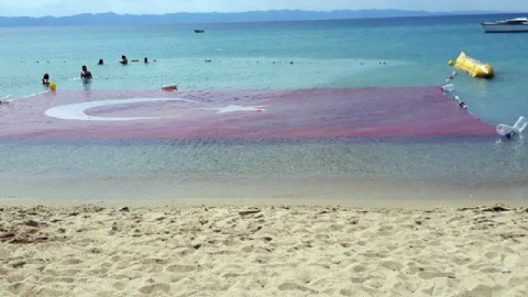 Edirne'nin Keşan ilçesine bağlı Erikli sahilinde bir işletmeci tarafından 30 Ağustos Zafer Bayramı nedeniyle denize dev Türk bayrağı açıldı.