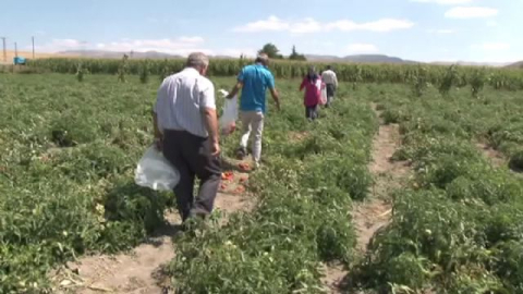 "İlaç katılmıyor, organik. Ankara'dan özel olarak buraya gelip domates topluyoruz. Ankara'da pazarda domates daha ucuz ama eve gelince yarısını atıyorum. Geçen sene 120 kilogram almıştık bu sene biraz daha az alacağız."