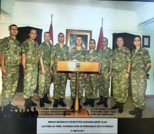 Şırnak'ın Uludere ilçesinde helikopterin düşmesi sonucu şehit olan 13 askerden 6'sının birlikte çektirdiği son fotoğraf ortaya çıktı. Kazada şehit olan 23. Jandarma Sınır Tümen Komutanı Tümgeneral Aydoğan Aydın ile silah arkadaşları Albay Oğuzhan Küçükdemir, Albay Gökhan Peker, Yarbay Songül Yakut, Binbaşı Koray Onay ve Yüzbaşı İlker Acar'ın yer aldığı fotoğrafın 31 Mayıs'ta akşam saatlerinde Alay Komutanlığında çekildiği kaydedildi. Şırnak'ta 31 Mayıs'ta Şenoba Tugay Komutanlığından kalkan AS 532 Cougar tipi helikopter, yüksek gerilim hattına takılarak düşmüş, 13 askerimiz şehit olmuştu.