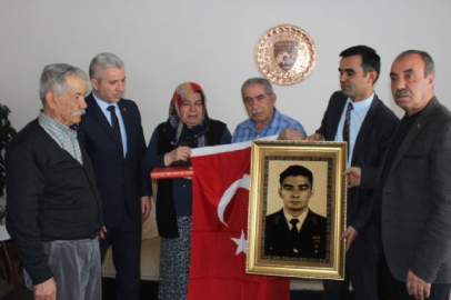 Şehit ailelerine dokuma halı üzerine işlenmiş çocuklarının fotoğrafları ile birlikte Kur'an-ı Kerim ve Türk Bayrağı hediye edildi.