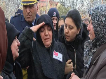Suriye'nin El-Bab kentinde devam eden Fırat Kalkanı operasyonunda şehit olan Üsteğmen Tarık Koçoğlu'nu annesi şehit oğlunu asker selamıyla uğurladı.