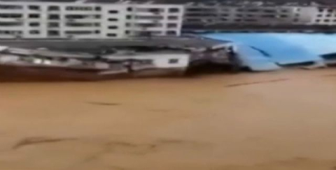 Çin'in Kuzey bölgesinde yaşanan sel felaketi hayatı felç etti. Şehir sel sularına teslim olurken, caddeler de adeta nehire döndü. On binlerce kişi bölgeden tahliye edilirken bir binanın sel nedeniyle çökmesi de amatör kamera tarafından saniye saniye böyle kaydedildi.