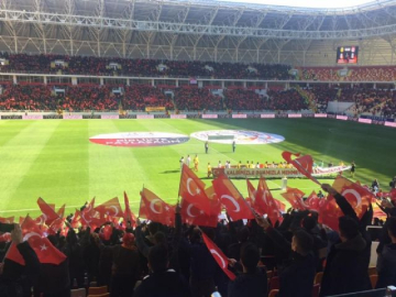 27 bin 44 kapasiteli stadyum, dağıtılan bayraklarla kırmızı beyaza bürünürken, Malatyalı taraftarlar müsabaka esnasında sık sık Afrin Harekatı ve görev yapan Mehmetçiklerimize tezahüratla destek verdiler.