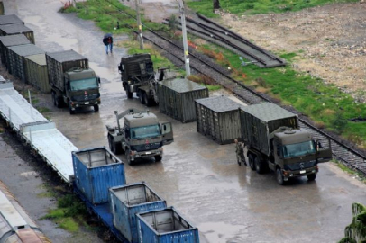 Hatay'ın sınır bölgesine Türk Silahlı Kuvvetleri (TSK) tarafından askeri lojistik malzeme sevkiyatı sürüyor. TSK'nın çeşitli birliklerinden vagonlarla gelen askeri lojistik malzemeleri İskenderun Garı'na ulaştı. Vagonlarla İskenderun Demiryolu İstasyonu'na ulaşan askeri malzemeler, vagonlardan indirilerek alınan güvenlik önlemleri altında askeri araçlara yüklendi. Askeri malzemelerin Suriye sınırındaki askeri birliklere gönderileceği öğrenildi. Sevkiyatların devam etmesi bekleniyor. (Mustafa Mert /İHA)