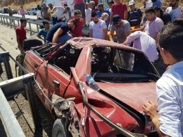 Bursa'da kaza yapan sürücüyü sıkıştığı yerden vatandaşlar kurtardı. Edinilen bilgiye göre kaza, akşam saatlerinde Bursa'nın Yenişehir ilçesine bağlı Koyunhisar köyü girişinde meydana geldi. Bilecik-Bursa karayolu üzerinde seyir halindeyken kontrolden çıkan 16 FBY 54 plakalı araç takla atarak bariyerlerin ortasına düştü. Çarpmanın etkisiyle araç içerisinde bulunan sürücü sıkıştı. Olay yerinden geçen diğer araçlarda bulunan vatandaşlar 112'yi ararken aynı zamanda sıkışan sürücüyü çıkarmak için çalışma başlattılar. Olay yerine gelen 112 ekipleri sıkıştığı yerden çıkarılan yaralıya ilk müdahaleyi yaptıktan sonra Bursa'daki hastaneye kaldırdı. Kazayla ilgili soruşturma başlatıldı. (Fatih Ak / İHA)