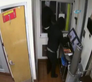 Amerika Birleşik Devletleri'nin Houston şehrinde kaydedilen görüntülerde, 3 soyguncunun fast food restoranına camdan girdiği görülüyor.
