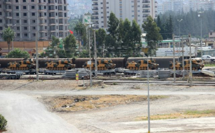 Hatay'ın sınır bölgesine askeri sevkiyat sürüyor. Türk Silahlı Kuvvetleri'nin çeşitli birliklerinden demiryolu ile Hatay'a gelen zırhlı askeri araçlar, İskenderun Demiryolu İstasyonu'na ulaştı. Vagonlar üzerindeki çok sayıdaki zırhlı araç, alınan güvenlik önlemleri dahilinde askeri personeller tarafından indirildi. İskenderun Demiryolu İstasyonu'na ulaşan çok sayıdaki askeri aracın takviye olarak Suriye sınırındaki askeri birliklerde konuşlandırılacağı öğrenildi. Askeri araç ve personel sevkiyatının devam etmesi bekleniyor. (Mustafa Mert / İHA)