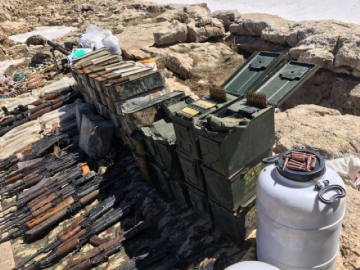 Türk Silahlı Kuvvetleri (TSK), Şırnak'ın Beytüşşebap ilçesinde devam eden operasyonlar kapsamında çok sayıda silah, mühimmat ve çok miktarda yaşam malzemesi ele gerildiğini açıkladı. TSK, Şırnak/Beytüşşebap'da, devam eden operasyon kapsamında tespit edilen bir mağara içerisinde, 22 adet Kalaşnikof piyade tüfeği ile 240 adet fişeği, bir adet M-16 piyade tüfeği ile 150 adet fişeği, üç adet Dragunov keskin nişancı tüfeği, bir adet Biksi makineli tüfeği ile 6 bin 516 adet fişeği, bir adet RPG-7 roketatar mühimmatı, 27 adet el bombası, bir adet 60 mm havan mühimmatı, 10 bin adet av tüfeği fişeği, bir adet gece görüş dürbünü, 30 adet tüp, bir ton muhtelif gıda ve çok sayıda giyim malzemesinin ele geçirildiğini bildirdi. (Uğur Kan Yüksek/İHA)