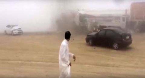 Suudi Arabistan'da sis nedeniyle yaşanan zincirleme kaza amatör kameraya yansıdı. Duran araçları fark etmeyen kamyon, hızla onlara çarptı. Kamyon ve çarptığı araçlarda büyük hasar oluştu. Bir otomobil ve cip de kazadan, son anda yaptıkları manevralarla kurtuldu. Zincirleme kazada 4 kişinin yaralandığı açıklandı.