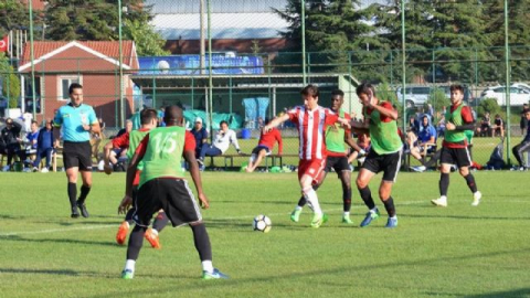 Sivasspor hazırlık maçında Gazişehir Gaziantep Futbol Kulübü ile 1-1 berabere kaldı. Bolu'da ikinci etap kamp çalışmalarını sürdüren Sivasspor, üçüncü hazırlık maçında TFF 1. Lig ekiplerinden Gazişehir Gaziantep Futbol Kulübü ile karşılaştı. Kırmızı-beyazlı ekip karşılaşmaya Tolgahan Acar, Hakan Bilgiç, Boye, Djakov, Elderson, Hakan Arslan, Galip Güzel, Muhammet Demir, Leandro, Emre Kılınç ve Kone 11'iyle başladı. Bolu Termal Otel sahasında oynanan mücadelede 32. dakikada hızlı gelişen Gazişehir Gaziantep atağında Muhammet Reis, Tolgahan'ın müdahalesi ile ceza sahası içinde yerde kalınca hakem penaltı noktasını gösterdi. Muhammet'in penaltı atışında Tolgahan topu kale direğinin hemen dibinde çeldi ancak dönen topu tamamlayan Muhammet takımını 1-0 öne geçirdi ve ilk yarı bu skorla sona erdi. İlk 45 dakikada Kone ve Galip'in birer şutu da direkten döndü. İkinci yarıda Teknik Direktör Samet Aybaba Tolgahan ve Elderson dışındaki tüm oyuncuları değiştirdi. Maçın 90+2'nci dakikasında sağ kanattan Rıdvan Şimşek ile kullanılan köşe vuruşunda Rıdvan pasını Mert Hakan'a verdi. Mert'in ceza sahasına yaptığı ortada Elderson kafa vuruşunu yaptı ve durumu 1-1'e getirdi. 90 dakika bu skorla sona erdi. Karşılaşmayı Başkan Mecnun Otyakmaz, eski başkanlardan Yahya Küçükkılıç ile Sivasspor'un eski futbolcuları Hikmet Uyaroğlu ve Tuna Turaylar'da takip etti. Sivasspor, dördüncü hazırlık maçında yarın Azerbaycan Premier Ligi ekibi Sumqayıt FK ile karşılaşacak. Karşılaşma saat 18.00'de başlayacak. (Uğur Yiğit / İHA)