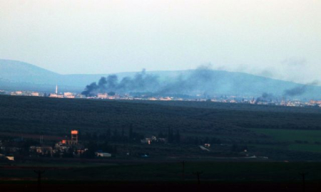 Afrin'deki Cinderese köyünde teröristlerin Türkiye'ye ait İnsansız Hava Araçlarının görüntü almasını engellemek için köyde lastik yaktıkları bildirildi.