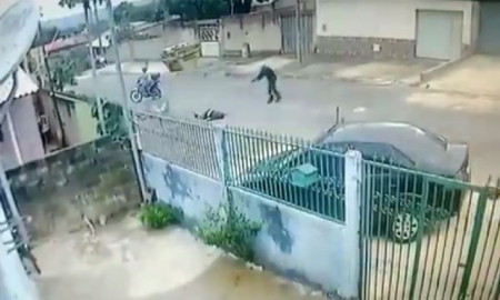 Brezilya'da sokak ortasında işlenen cinayet güvenlik kamerasınca görüntülendi. Motosikletiyle bir kişiye yaklaşan şahıs, silahını çıkardı ve art arda ateşledi. Kurşunların hedefi olan kişi yere yığılırken, saldırgan öldüğünden emin olmak için kurşun yağdırmaya devam etti. Talihsiz adam olay yerinde can verirken, saldırgansa kaçtı. Olay sırasında saldırıya uğrayan kişinin yanındaki şahsın yaşadığı panik ve kaçışı da güvenlik kamerasına yansıdı.