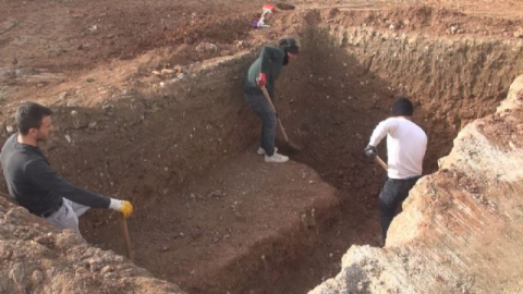 Vatandaşların can güvenli açısından alana girmelerine müsaade edilmeyen kazıda yer, yer kepçe yer yer de kazma ve küreklerle yaklaşık 20 işçi tarafından 5 metre derinliğinde 7 galeriden oluşan sondaj kazısında ortaya çıkan bulgular Müze Müdürlüğü personeli tarafından üzerleri toprakla yeniden kapatılıyor.