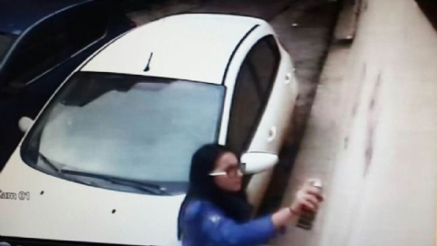 Bursa'da bir genç kızın ezberinde olmayan sözü telefonuna bakarak bir evin duvarına yazmaya çalışması ve cümlenin yarısında spreyinin bitmesi saniye saniye kameralara yansıdı.
