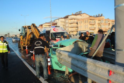 Antalya'nın Manavgat ilçesinde bariyerlere çarpan otomobil içinde sıkışan sürücü 1 saatlik çalışmayla kurtarıldı. Aracın ön tarafında bulunan stepne, bariyerin şoför koltuğuna kadar gelmesini engelledi.