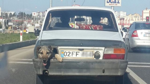 Adıyaman'da, seyir halinde olan bir otomobilin stop lambasından dışarıya çıkan köpek kafası görenleri hayrete düşürdü. Gölbaşı istikametinden Adıyaman istikametine gelmekte olan bir otomobilin stop lambası yerinde köpek kafasının olduğunu fark eden araç sürücüleri durumu fotoğrafladı. Otomobil sürücüsü tarafından bagaja konulan köpeğin havasız kalmaması için sürücü tarafından sol stop lambası söküldü. Stop lambasının sökülmesiyle birlikte bagaja konulan köpek arada kafasını dışarıya çıkartarak hem etrafı izledi hem de hava aldı. Stop lambaları yerine köpek kafasını gören sürücüler durumu fotoğraflarken, bagajında köpek bulunan otomobil bir süre sonra gözlerden kayboldu. (Cihan Kizir /İHA)
