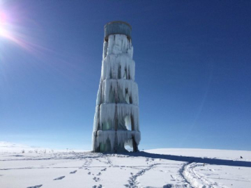 Van'ın Özalp ilçesinde etkili olan soğuk havadan dolayı bir su deposundan sızan suyun donmasıyla ilginç görüntüler oluştu. Sıcak havanın mevsim normallerinin üzerinde seyrettiği Doğu Anadolu Bölgesinde gece eksi 30 dereceye kadar düşen hava sıcaklığı bir çok dere, baraj ve göletlerin yüzeyini dondururken, bazı mahallelerdeki içme suyu depolarını da dondurdu. Van'ın Özalp ilçesinde gece hava sıcaklığının eksi 25 dereceye kadar düşmesi sonucu ilçeye bağlı Sarıköy Mahallesi'nde bulunan yaklaşık 20 metre yüksekliğindeki su deposundan çevreye akan su, buzdan bir şelaleyi andıran görüntüler oluşturdu. Mahalle halkı, soğuk havanın bu sene etkisini çok erken gösterdiğini ve su deposunun "buz şelalesi"ne döndüğünü belirttiler.