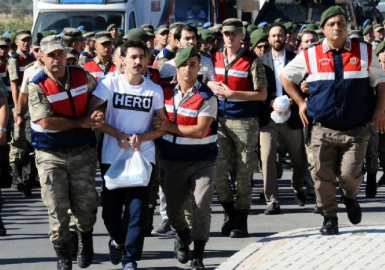 Sanıklardan Muharebe Arama Kurtarma (MAK) timinde görevli eski Astsubay Gökhan Güçlü, duruşma salonuna gelirken üzerine giydiği beyaz tişört üzerinde büyük harflerle İngilizce 'HERO' yazan ve Türkçesinin 'Kahraman' yazılı tişört ile duruşmaya katıldı.