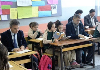 Suluova Ticaret ve Sanayi Odası(TSO) Başkanı Turgut Aksu, Şeker Ortaokulu'nda öğrencilerle birlikte kitap okudu.
