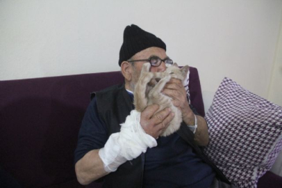Bolu'da, sobayı benzinle tutuşturmak isterken çıkan yangında elinden yaralanan 83 yaşındaki Ali Meşe, tedavi gördüğü hastaneden taburcu olduktan sonra yerleştiği kızının evinde, yangında kurtardığı kedisinden bir an olsun ayrılmıyor.