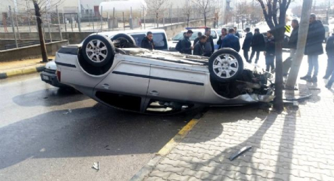 Gaziantep'te meydana gelen kazada, sürücü takla atan araçtan burnu bile kanamadan kurtuldu.