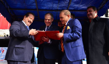 Gençlik ve Spor Bakanı Akif Çağatay Kılıç'ın konuşmasının ardından Bakan Kılıç ve Taksimspor Başkanı Garo Hamamcıoğlu, Taksimspor Süleyman Seba Tesisleri'nin devir protokolünü imzaladı.