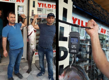 Manisa'nın Soma ilçesinde, Sevişler Barajı'na balık tutmaya giden iki amatör balıkçı, 140 santim boyunda 44 kilogram ağırlığında yayın balığı yakaladı. Soma'da amatör olta balıkçılığı yapan Mustafa Karcı ve İbrahim Demir, Sevişler Barajı'nda oltayla 44 kilogramlık yayın balığı tuttu. İki amatör balıkçı, oltayla yakaladıkları yayın balığını sudan çıkarırken oldukça zorlandıklarını ve boyunu gördüklerinde çok şaşırdıklarını dile getirdiler. Balık av malzemeleri satan dükkanda sergilenen yayın balığını gören vatandaşlar da cep telefonlarıyla fotoğraf çekerken, şaşkınlıklarını gizleyemedi. Amatör balıkçı İbrahim Demir, "Balığı yakaladıktan sonra arkadaşım Mustafa ile birlikte güçlükle çekerek, arabaya taşıdık. Ardından av malzemelerimizi aldığımız arkadaşımızın iş yerine getirdik. Hayatımda hiç bu kadar büyük balık tutmamıştım. Beni heyecanlandırdı" dedi. (Yılmaz Sarıpınar/İHA)