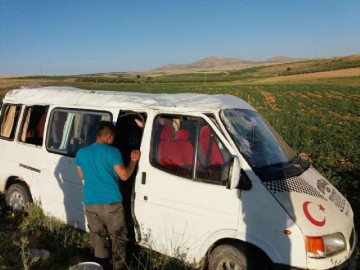 Karaman'da tarım işçilerini taşıyan minibüsün kontrolden çıkarak nohut tarlasına devrilmesi sonucu 17 kişi yaralandı.