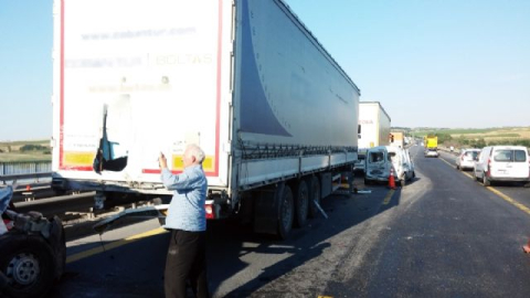 Kaza, saat 17.30 sıralarında Ahmediye mevkii, Karasu Viyadüğü İstanbul istikametinde meydana geldi. Edinilen bilgiye göre, seyir halindeki yabancı plakalı tır fren yapınca, arkadan gelen 2 tır, 1 minibüs ve otomobil duramayarak zincirleme kaza yaptı. Kaza sonucu Minibüs şoförü Haydar Atakul araç içerisinde sıkıştı. Vatandaşların ihbarı üzerine olay yerine gelen itfaiye ekipleri Atakul'u sıkıştığı yerden çıkarılarak sağlık ekiplerine teslim etti. Yaralanan sürücü sağlık ekiplerinin ilk müdahalesinin ardından hastaneye kaldırıldı. Kaza nedeniyle TEM Otoyolu Edirne istikameti yaklaşık 1 saat trafiğe kapandı.