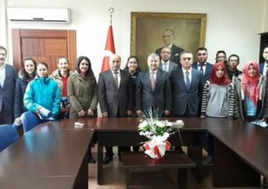 Develi'de TEOG sınavında dereceye giren öğrenciler, öğrenciler İlçe Milli Eğitim Müdürü Ali Arslan ve öğretmenleriyle birlikte Develi Kaymakamı Murat Duru'yu makamında ziyaret etti.
