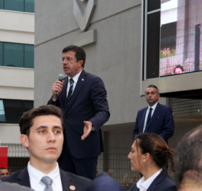 Ekonomi Bakanı Nihat Zeybekci, referandum çalışmaları kapsamında geldiği İzmir'de vatandaşlara hitap etti. AK Parti Buca İlçe Başkanlığı Seçim Koordinasyon Merkezi önünde partililerle buluşan Zeybekci, büyük bir coşkuyla karşılandı.