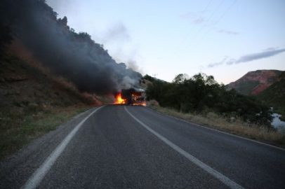 Diyarbakır'ın Lice ilçesinde terör örgütü PKK mensupları karakola beton bariyer taşımaktan dönen tırı durdurup ateşe verdi. Şoförü bir süre alıkoyduktan sonra serbest bırakan teröristlerin yakalanması için bölgede operasyon başlatıldı.