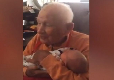 Kanadalı çift Jason ve Susan Zwolak yeni doğan oğullarının, büyük dedesi ile ilk buluşma anını canlı olarak yayınladı. Jason'ın Facebook'taki hesabında paylaştığı video kaydında, aile yakınlarının dedenin yanına gelerek torununu kucağına almasını teklif ettiği görülüyor. 105 yaşındaki yaşlı adam ise, kollarının tutmayacağını; gücünün yetmediğini ifade ediyor. Aile fertleri ise, dedeyi cesaretlendirip ikna ederek, çocuğu kucağına bırakıyorlar. Kısa bir süre duraksayan yaşlı adamın yüzünde tebessüm beliriyor ve hemen alışıyor.