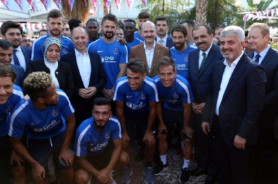 SOYLU: ÇOK ZOR DENİLEN İŞLERİ KOLAY BAŞARDIK İçişleri Bakanı Süleyman Soylu ise yaptığı açıklamada, "Şunu söylemek gerekir Trabzonspor'da spor adına ve futbol adına her şey var. Çok zengin bir halin içerisinde un var yağ var şeker var. İnşallah şampiyonluk gelecek. Bu sene kenetlenerek büyük bir başarının altına imza atmak sorumluluğumuzdur. Çok zor denilen işleri kolay başardık. Zor dersek başaramayız. Başta başkanımıza futbolcularımıza taraftarlarımıza güzel bir sezon diliyorum. Bence başlangıç iyi yapıldı, arzu edilen skorlara hep beraber ulaşacağız. Başarılar diliyorum Kurban Bayramı'nı tebrik ediyorum" ifadelerini kullandı.