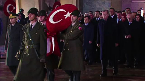 Türkiye Cumhuriyetinin kurucusu Gazi Mustafa Kemal Atatürk, vefatının 79'uncu yıl dönümünde törenlerle anıldı. Saatler 9'u 5 geçeyi gösterdiğinde tüm Türkiye'de hayat adeta durdu. Devletin zirvesi ise Atanın ebedi istirahatgahı Anıtkabirdeydi. Buradaki törende mozoleye çelenk sunuldu, saygı duruşunda bulunuldu. Ardından Cumhurbaşkanı Erdoğan, Anıtkabir özel defterini imzaladı. Atatürk'ün son anlarını geçirdiği Dolmabahçe Sarayı ise ziyaretçi akınına uğradı.