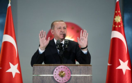 Fırat Kalkanı Harekatı ve Suriye'de yapılan terörle mücadeleden bahseden Erdoğan, "Hatırlarsanız, bir dönem Suriye tarafından atılan kurşunlarla, roketlerle Kilis'te ve sınır boyundaki yerleşim yerlerimizde her gün kayıplar veriyorduk. Vatandaşlarımız yolda giderken önleri yerine gökyüzüne bakarak yürür haline gelmişlerdi. Gaziantep'te gerçekleştirilen canlı bomba saldırısının ardından, o gün 53 kardeşimiz şehit oldu, kararımızı verdik, Fırat Kalkanı Harekatını başlattık. Cerablus'tan, Er Rai'den girdik, Dabık'a indik, El Bab'a girdik ve DEAŞ'ı buralardan temizledik ve o toprakları sahipleri olan Arap kardeşlerimize verdik. Sağdan ve soldan ciddi şekilde sıkıştırılmamıza rağmen bu operasyonu hedefine ulaştırdık. Kusura bakmayın artık göbeğimizi biz kendimiz keseceğiz. Sizlerle dayanışma içinde bunu yapalım dedik olmadı. Buradan yine söylüyorum, bundan sonra da eğer topraklarımıza oralardan en ufak bir taciz, saldırı olursa biz sağa sola bakmadan gereğini yaparız, kimse bundan endişe etmesin. Şuanda 911 kilometrelik Suriye sınırının 650 kilometresini duvarlarla örmüş vaziyetteyiz. Bu 911 kilometreyi aynı şekilde öreceğiz ki, teröristlerin giriş çıkışlarını, silah aktarmalarını engelleyelim. Sadece duvar örmekle kalmıyoruz ve bu duvarları da aynı zamanda tüm araç gereçlerle donatıyoruz. İşi kolaylaştıracağız. Irak sınırında aynı şeyi yapacağız. İran sınırının da uygun olan yerlerinde bunu gerçekleştireceğiz. Bugün artık Kilis'te hiçbir vatandaş nasıl 'başımıza roket düşer mi' endişesini taşımıyorsa, tüm illerimizde de bu hale geleceğiz. Teröristlerden temizlediğimiz bölgelere dönen 100 binin üzerinde Suriyeli kardeşimiz de kendi topraklarında güvenli bir şekilde hayatlarını sürdürüyor. Buradan çıkartacağız ders şudur; ülkemizde huzur içinde yaşamak istiyorsak önce sınırlarımızın ötesini güvenli hale getirmek mecburiyetindeyiz. Hem kendi vatandaşlarımızın hem de bize sığınmış kardeşlerimizin geleceği için bu sorumluluğu üstlenmek mecburiyetindeyiz. Bizden sınırlarımız boyunca gözümüz göre göre bir terör devleti kurulmasına sessiz kalmamızı bekleyenler kusura bakmasınlar. Bizi hiç tanımamışlar demektir. Geçmişte kurumlarımıza sızmış ihanet çetesi mensupları vasıtasıyla belki bu tür operasyonlar yapabiliyorlardı ama artık o günler geride kaldı. 15 Temmuz ihanet girişimi, daha önce sezdiğimiz, tahmin ettiğimiz, ufak tefek emarelerini gördüğümüz pek çok gerçeği gün ışığına çıkarttı. Karşı karşıya geldiğimizde yüzümüze gülenlerin arkamızdan neler çevirdiğinin farkındayız. Elbette bizim önceliğimiz meselelerimizi siyaset yoluyla, diplomasi yoluyla, görüşmeler yoluyla çözüme kavuşturmaktır. Ama bunların işe yaramadığı yerde ülkemizin ve milletimizin bekasını korumak için kanımızın son damlasına kadar mücadele etmesini de çok iyi biliriz. Şairin dediği gibi 'bu vatan toprağın kara bağrında sıra dağlar gibi duranlarındır, bir tarih boyunca onun uğrunda kendini tarihe verenlerdir.' İşte 15 Temmuz'da gördük ki, kendini tarihe vermeye hazır 80 milyon kahraman hazır bekliyor. Bizim bu topraklardan başka vatanımız yok. Ülkemizi korumak için nereye kadar gitmemiz gerekiyorsa oraya kadar gideceğimizden kimsenin şüphesi olabilir. Bir gece ansızın gelebiliriz demiştim. Ne zaman, nerede bunu açıklayacak değiliz. Bizim endişemiz ve kavgamız sadece kendimiz için de değildir. Biz ülkemizdeki ve bölgemizdeki kardeşlerimizle birlikte tüm dünyanın huzuru, güvenliği, iyiliği için çalışıyoruz. Özellikle terörle mücadele konusundaki hassasiyetimizin, çağrılarımızın gerisinde bu anlayış vardır" şeklinde konuştu.