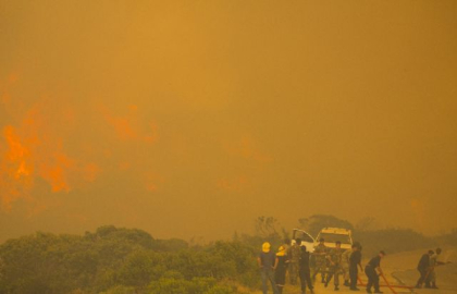 Güney Afrika'nın başkenti Cape Town'da Ümit Burnu'nun Okyanus'a bakan tarafında çıkan büyük orman yangını devam ediyor. Görüntüler, Hollywood'nun felaket filimlerine benziyor. Söndürme ekipleri Kuvvetli esen rüzgârın etkisisyle yükselen alevleri kontrol altına almaya çalışıyor. Yangın evlere ve rezidanslara yaklaşmaya devam ediyor. Durumu kontrol almaya çalışan ve tehlikeli bölgedeki alana girip çıkan İtfaiyeler, ambulanslar, afet yönetim araçları, polis ve trafik araçlarının flaşları yoğun sis altında yanıp sönemeye devam ediyor. Endişeli bölge sakinleri ya yangını söndürmeye devam ediyor, ya da bölgeyi terk etmek üzere kıymetli eşyalarını topluyorlar. Askeri ve sivil helikopterler ağaçların üzerine su dökerek yangını söndürmeye devam ediyor. Bitki örtülerinin yoğun bulunduğu alanlarda yangın alevleri birden yükseliyor. Bu da söndürme çalışmalarını zora sokuyor.
