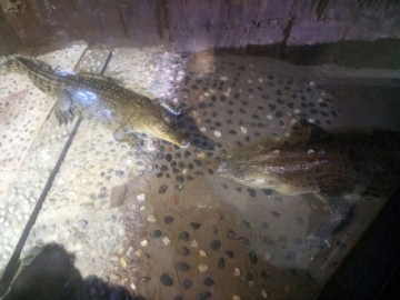 Akvaryum ve Sualtı Hayvanat Bahçesi Genel Müdürü Gülnur İnkaya, "Biz 28 Nisan'da kapılarımızı açtık. Ve Türkiye'de ilk defa olan canlıları burada görüyor ziyaretçilerimiz. Tabii bunlar arasında en çok ilgiyi çeken de sizin de biraz önce beslenmesine şahit olduğunuz timsahlarımız. Erkek olan kral timsah dediğimiz, 5 metre boyunda, 750 kilo ağırlığında ve 30 yaşında olduğu tahmin ediliyor. Diğeri de 3 buçuk metre civarında olup, o da dişi. Aşağı yukarı 45 yaşlarında olduğu tahmin ediliyor" şeklinde konuştu.