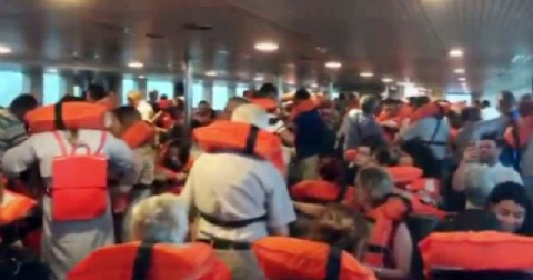 İstanbul'da şiddetli yağış ve fırtına Karaköy-Kadıköy vapurunda paniğe yol açtı. Dalgaların yükselmesiyle vapurda olanlar dağıtılan can yeleklerini giydi. İstanbul'da aniden bastıran şiddetli yağış ve fırtına Karaköy- Kadıköy vapurunda hareketli dakikalara yol açtı. Dalgaların boyun yükselmesiyle vapurda olanlara can yelekleri dağıtıldı. Vapurdaki yolcular dağıtılan can yeleklerini giydi.