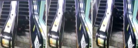 Çin'de yaşlı adamın yürüyen merdiven macerası az daha faciayla bitiyordu.