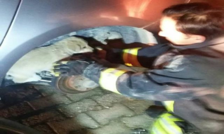 Yavru köpek aracın lastiği sökülerek kurtarıldı