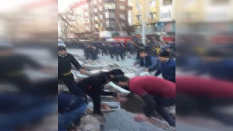 Zeytinburnu'nda 7 katlı bir bina çöktü. Olayda 2 kişi hayatını kaybederken, meydana gelen çökme sonrası görüntüler ortaya çıktı. Binanın çökmesinin ardından olay yerine koşan vatandaşların yaralıları enkaz altından kurtarma çalışmaları bir cep telefonu tarafından kaydedildi.