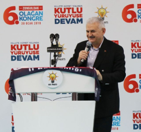 2019 yılındaki seçimleri hatırlatan Başbakan Binali Yıldırım, "Biz Zonguldaklıyız. Bizim sevdamız da kömürümüz kadar karadır. Kara elmas diyarının ak gönüllü insanları, değerli yol arkadaşlarım, AK kadınlar, AK gençler hepinizi muhabbetle selamlıyorum. Bugün sizlerle birlikte olmaktan büyük bir bahtiyarlık duyuyorum. Kongremiz hayırlı uğurlu olsun. Buradan Zonguldak'ın her bir köşesini, Tam 170 senedir maden bölgesi olan Zonguldak'ta ve o ocaklarda hayatını yitiren kardeşlerimi rahmetle anıyorum. Emeğin şehri, alın teri Zonguldak'tan madende çalışan yüzleri kömür karası ama alınları ak olan bütün kardeşlerimi sevgiyle selamlıyorum. Her gittiğimiz yerde teşkilatlarımız vatandaşlarımız büyük bir coşkuyla büyük bir heyecanla muhabbetle bizi karşılıyor. Bağrına basıyor. Recep Tayyip Erdoğan'a yüzde 53 destek verdiniz Cumhurbaşkanı seçtiniz. İnşallah 2019 seçimlerinde daha güzel bir gelecek için yeni bir tarih yazmaya hazır mıyız? 15 yıl gibi kısa bir sürede Türkiyemizi başkalarının hayal dahi edemeyeceği bir noktaya taşıdık. Şimdi soruyorum bugün dünyada büyüme rekorları kıran ülke hangi ülke? Kendi savaş uçağını, uydusunu yapan ülke hangi ülke? Savunmada yerli üretimin yüzde 65'e çıkartan ülke hangi ülke? İhracat rekorları kıran ülke hangisi? Dünyada en büyük projeleri gerçekleştiren ülke hangi ülke? Esnafın, işçinin, vatandaşın hakkını gözeten kollayan ülke hangisi? Engellisine, gencine, yaşlısına bütün vatandaşlarına sahip çıkan ülkenin adı ne? İlleri kalkındıran ülke hangi ülke? Yetmez, daha fazlasını yapacağız" ifadelerini kaydetti.