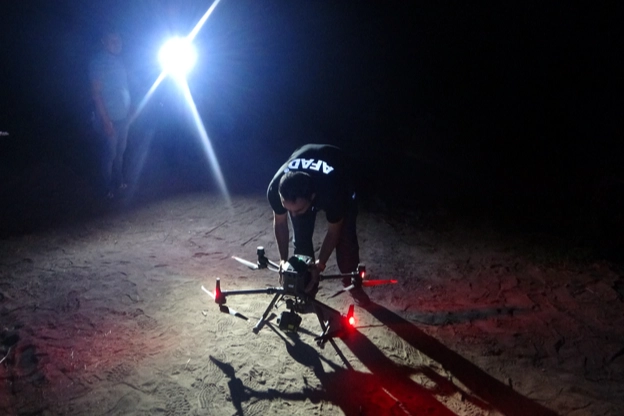 Olay yerine gelen İlçe Jandarma Komutanlığı, AFAD ve UMKE ekipleri, iz takip köpeği ve termal kamera ile Gündoğdu'yu arama çalışması başlattı.