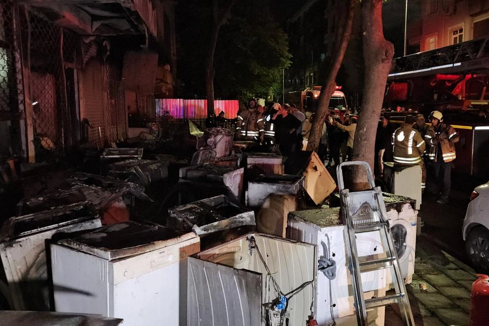 Cennet Mahallesi Namık Kemal Caddesi'nde 4 katlı binanın giriş katındaki beyaz eşya mağazası ile bu iş yerine ait depo kısmında bilinmeyen nedenle yangın çıktı.