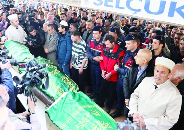 Beş kardeşin cenazeleri yan yana toprağa verildi. Çocukların cenazelerinin camiye getirilişi sırasında, törene katılanlar gözyaşlarını tutamadı. Cenaze törenine, Torbalı Açık Cezaevi'nden getirilen baba Hakan Akcan, jandarma güvenlik önlemleri altında katıldı. Baba Akcan, çocuklarının tabutlarına tek tek başını koyarak vedalaştı.