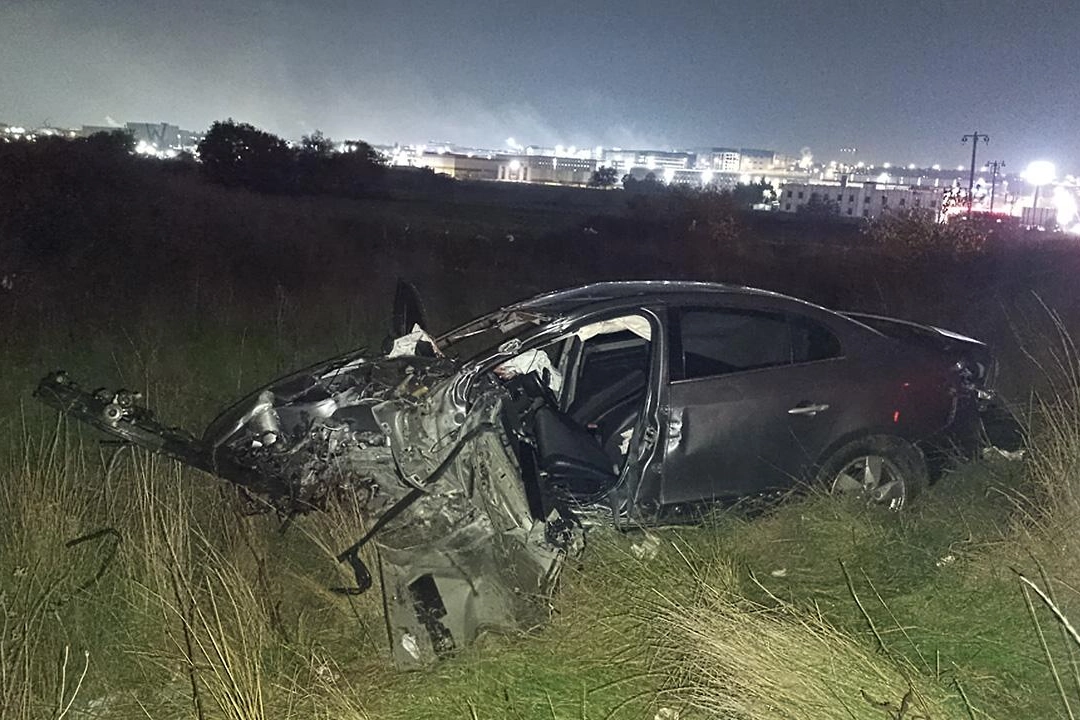 A.K. idaresindeki otomobil, Otoban Bulvarı’nda önce bariyere çarptı, ardından şarampole devrildi.