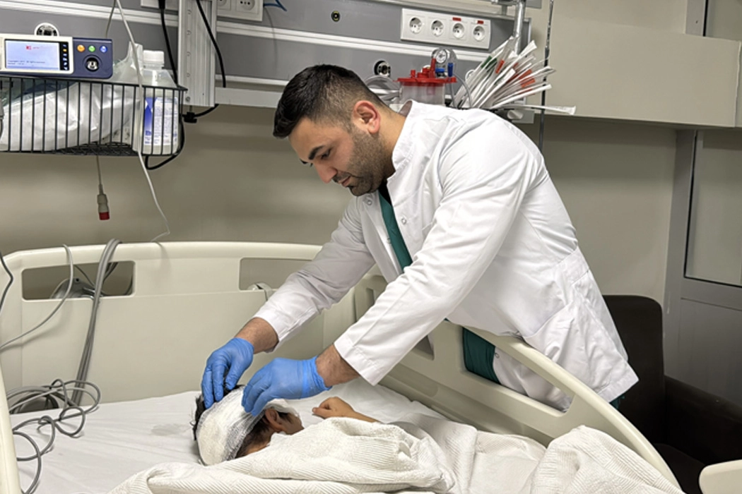 Beyin ve Sinir Cerrahisi Uzmanı Semih Çelik de "Çocuğumuzun şuuru açık. Ancak kafası ve vücudunun çeşitli yerlerinde derin yaralar mevcut. Hastamızı yoğun bakım ünitesinde takip altına aldık. Öncelikle enfeksiyonu kontrol altına aldıktan sonra yaralarını tedavi edeceğiz." dedi.